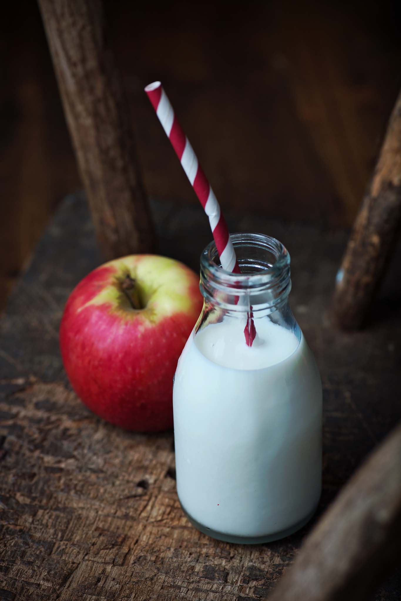 I have a smooth, grey, seamless background, and we adorn the little set with apples, vintage books, a small chalkboard, a jar of wooden pencils, school milk, and a book. It's a chance to show off your school clothes, favourite book, instrument, and bag.